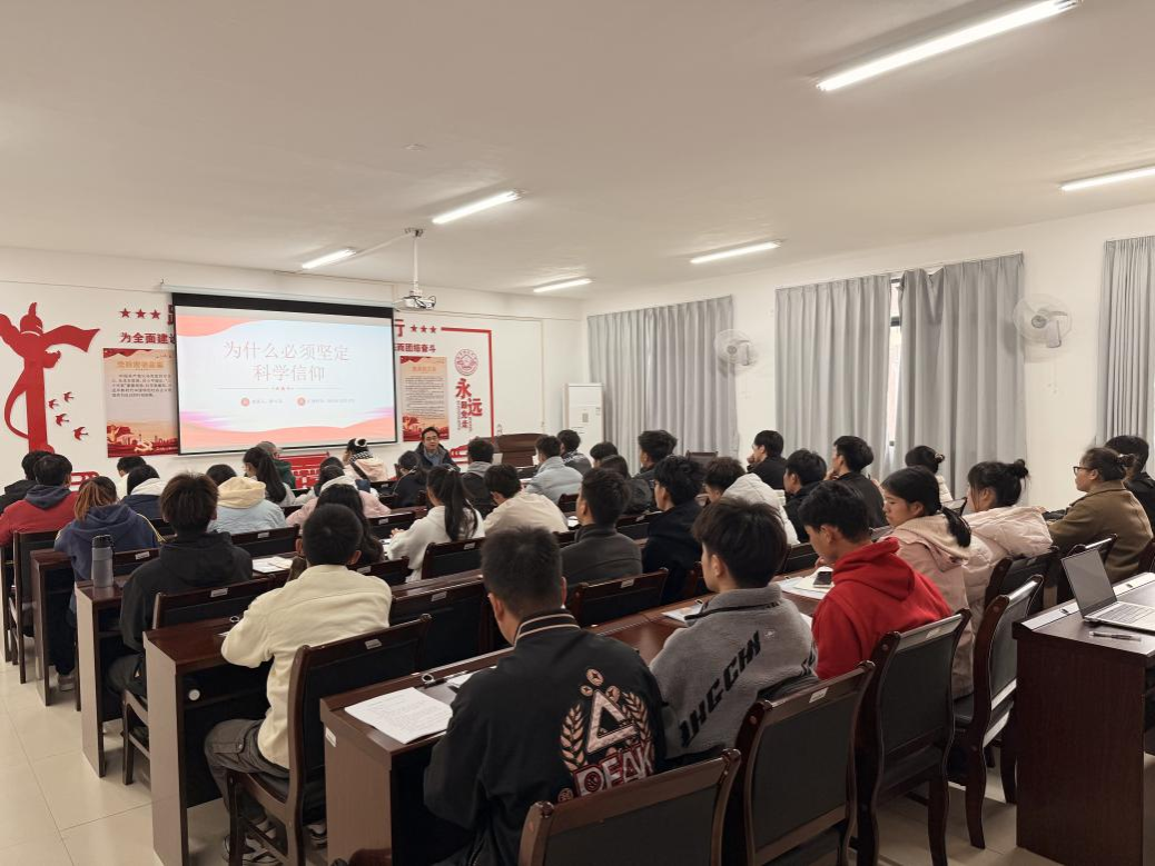 在实验楼B-314教室开展入党发展对象“坚定科学信仰”专题党课,本次党课由学院党委副书记陈军弟老师主讲,学院2024年下半年全体入党发展对象参加。