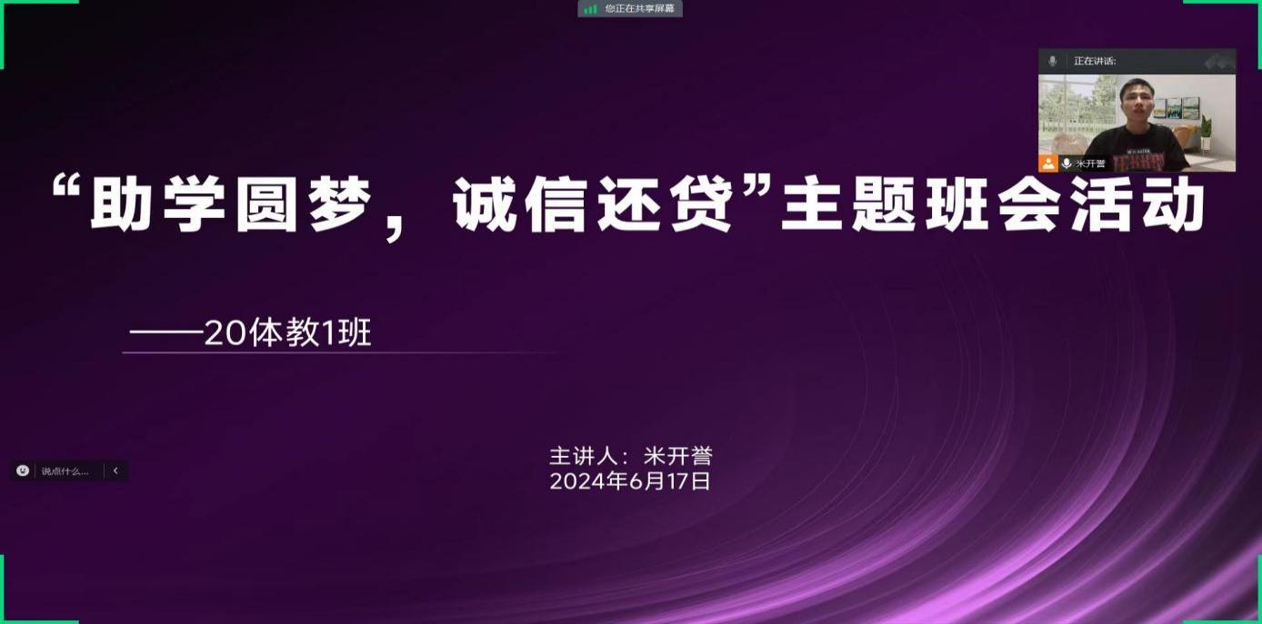 2024届各毕业班于6月17日在线上线下双渠道举办了“助学圆梦,诚信还贷”主题教育班会。此次班会由各班级资助委员主持,2024届获得国家助学贷款毕业生参加。