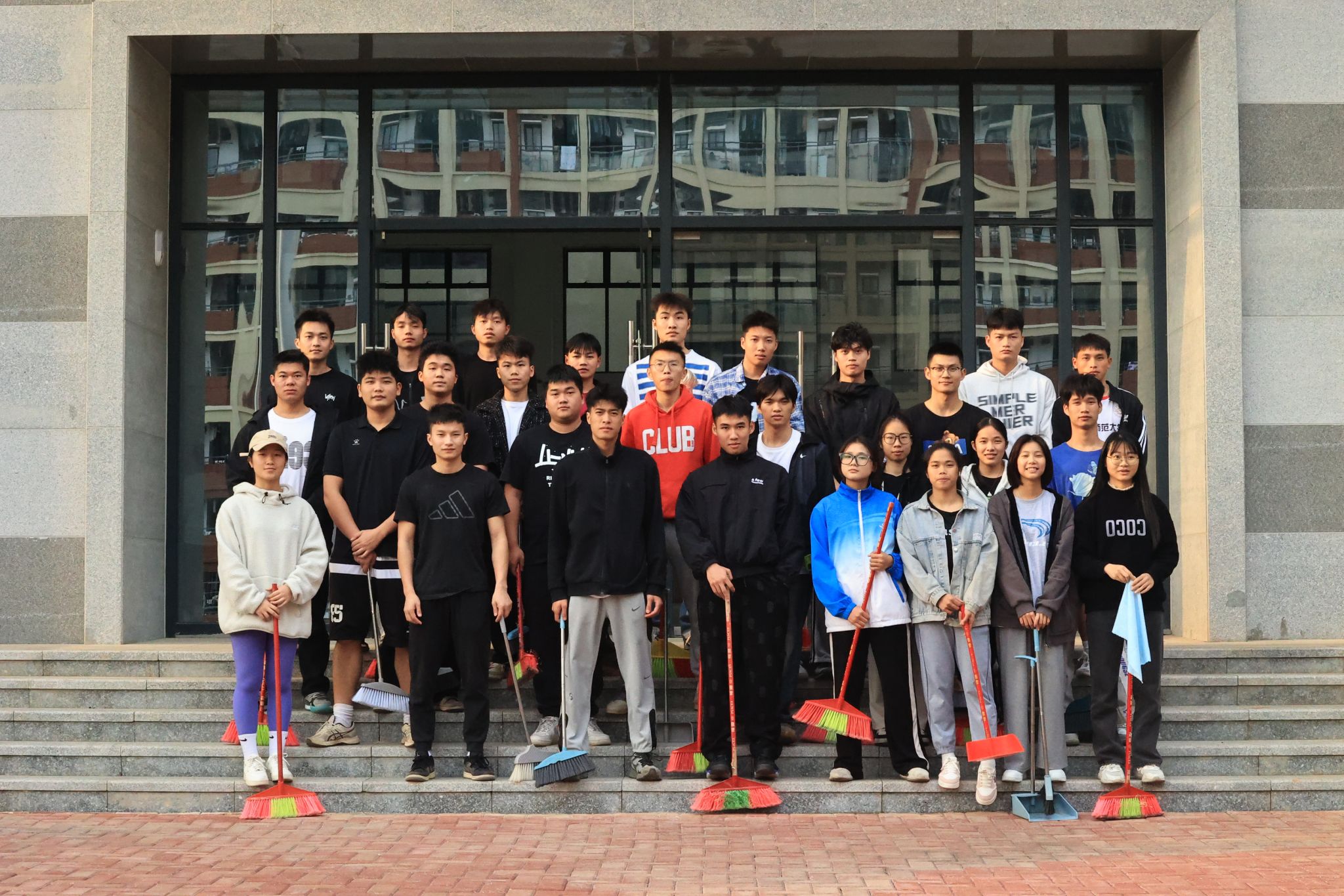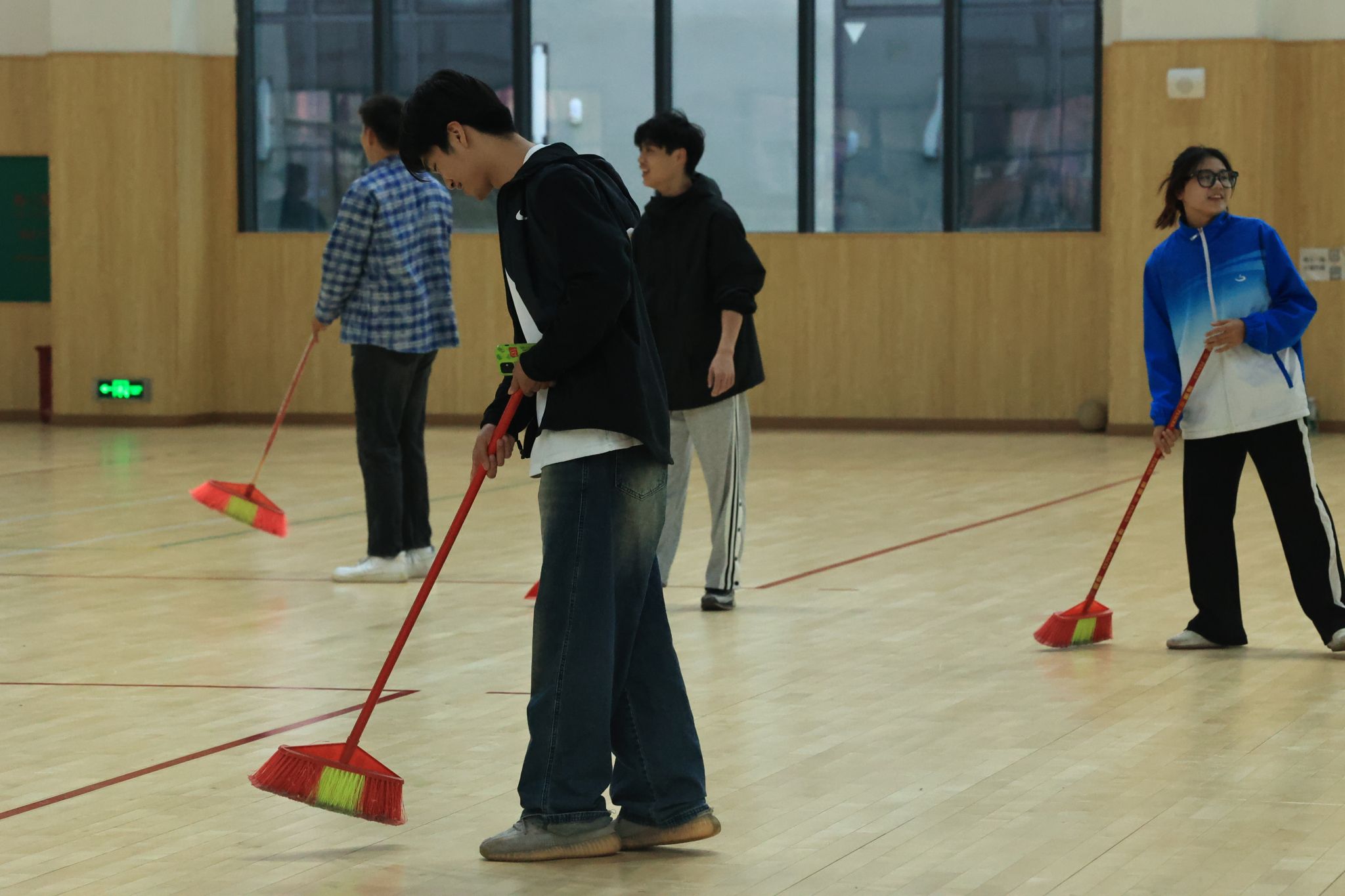 活动伊始,在活动负责人陈光生的组织带领下,现场志愿者们根据现场情况进行了规划分工。志愿者们行动迅速、分工合作,有条不紊得对体育馆的地面、玻璃进行了清扫,并对卫生死角进行了彻底清理。清扫过程,志愿者们不怕脏、不怕累,齐心协力,干劲十足。用实际行动践行雷锋精神,践行“爱校、护校、荣校”理念,展现了新时代大学生积极向上的精神风貌。经过一下午的辛勤劳动,兰园体育馆焕然一新。志愿者们为同学们提供了一个干净、整洁的体育馆,志愿者们在劳动过程中也深化了对雷锋精神内涵的理解。