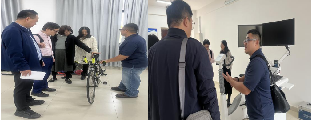 教师带领程建权教授一行参观了体育信息技术实验室、体质监测与健康促进实验室、运动解剖与生理实验室、体育保健与康复实验室。为各位专家、领导介绍了体育数字技术、运动生物力学、体质与健康评估、运动心理、运动解剖、运动康复等相关仪器设备。