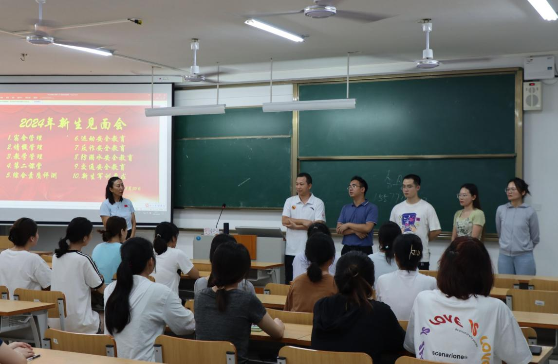晚上,2024级各班同学召开了班会,学院领导到各班进行看望,并与辅导员、班主任到学生宿舍走访,了解同学们的思想状态,及时解决同学们遇到的问题,让同学们安心学习、生活。
