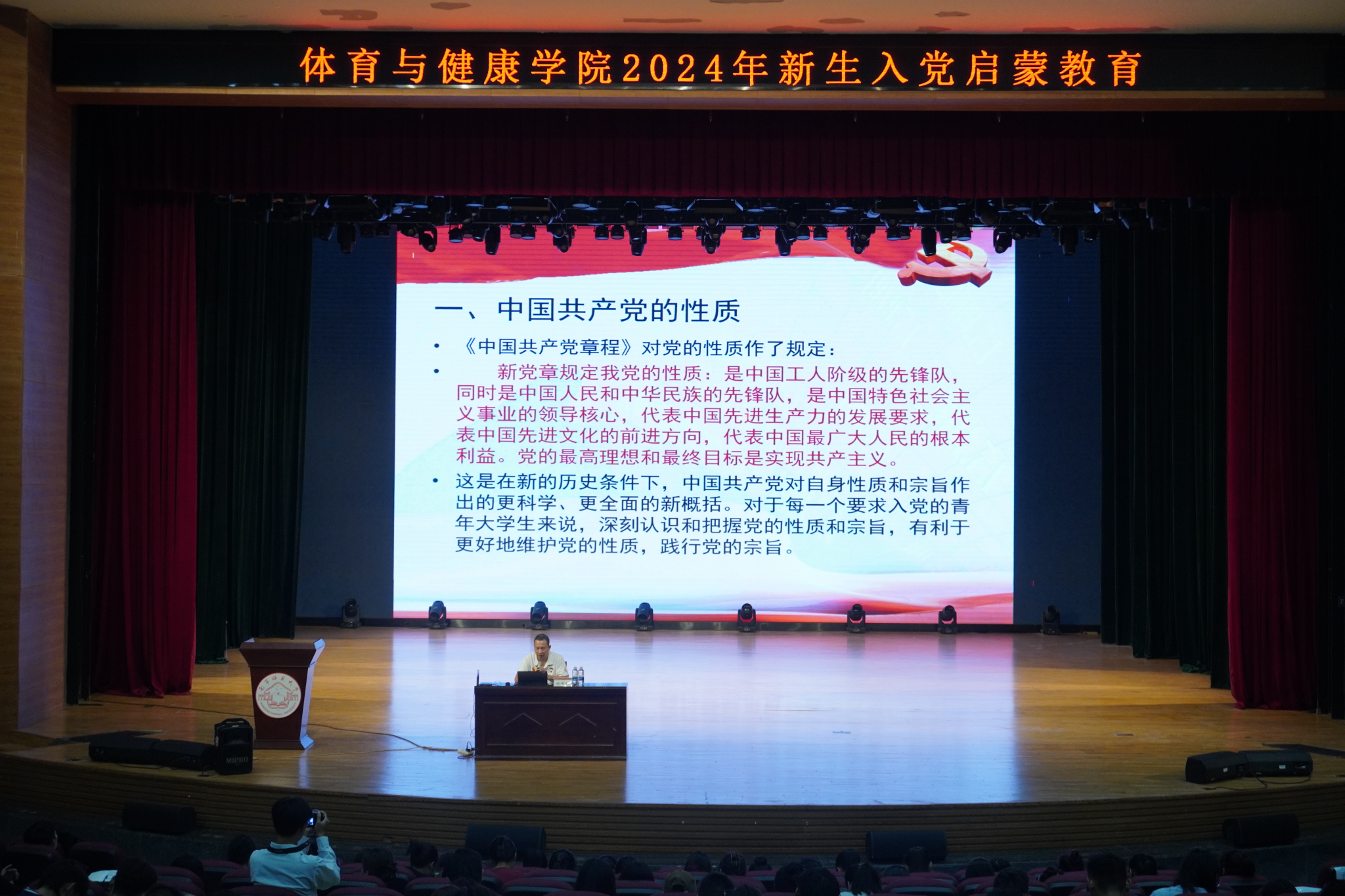 党委书记磨有积老师在武鸣校区音乐楼1号报告厅给2024级新生作了题为“加强党史学习,端正入党动机”的入党启蒙教育,学工办全体老师及2024级全体学生参加此次活动。
