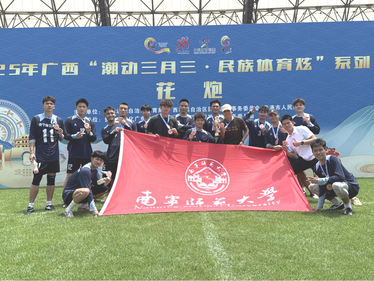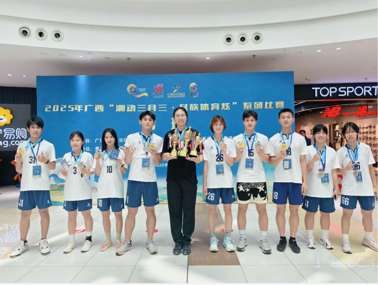 2025年4月19日至20日,由自治区体育局、自治区民宗委、贵港市人民政府主办,贵港市文化广电体育和旅游局、贵港市民宗委承办的2025年广西“潮动三月三·民族体育炫”系列比赛在贵港市隆重举行,我校派出绣球队、花炮队、高脚竞速队、珍珠球队共4个代表队参赛。经过2天激烈的角逐,我校绣球队勇夺1金2银,高脚竞速队揽获5银1铜,花炮队、珍珠球队各摘1枚铜牌,以累累硕果彰显南宁师大民族体育的竞技实力。