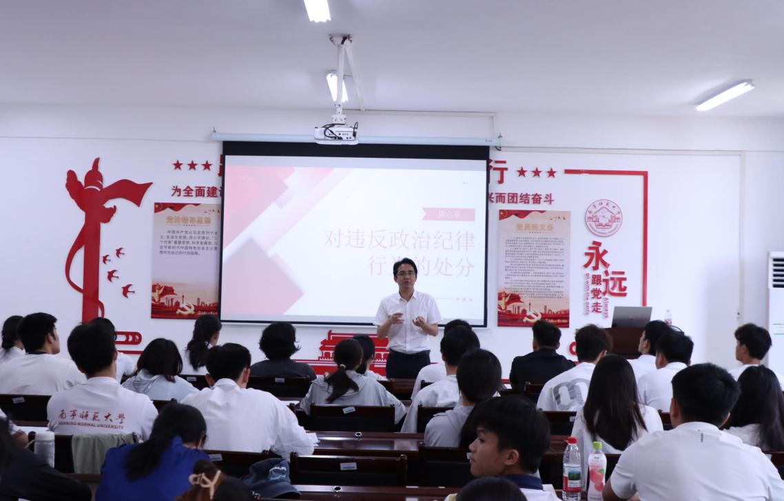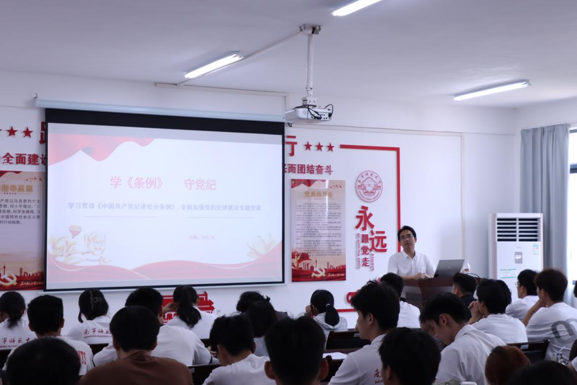 于4月22日在武鸣校区1号实验楼B314室组织开展2025年上半年预备党员培训班第二讲:《学<条例>,守党纪》,本次党课由学院党委副书记陈军弟老师主讲,学院2024年下半年、2025年上半年新发展预备党员参加。