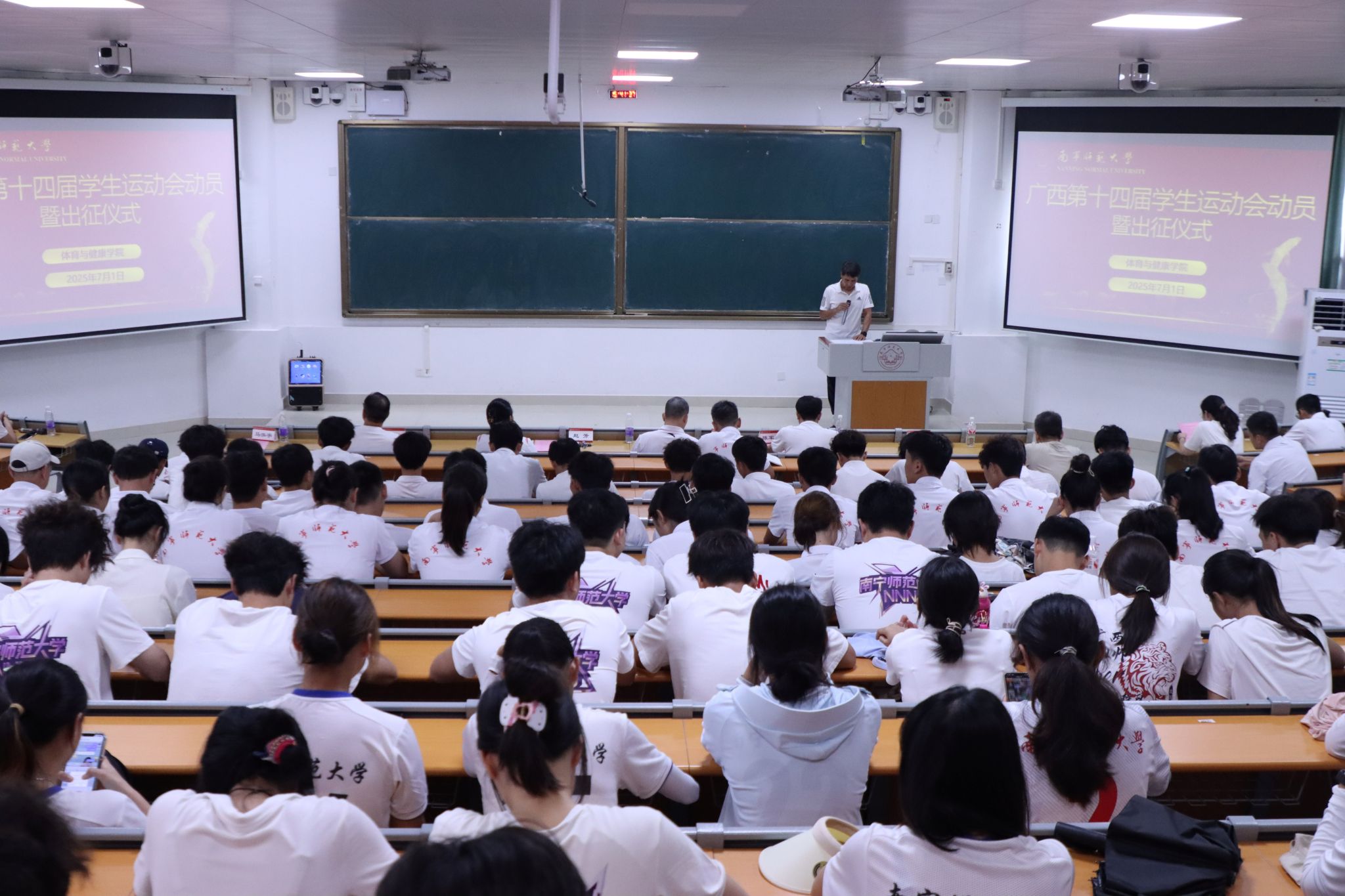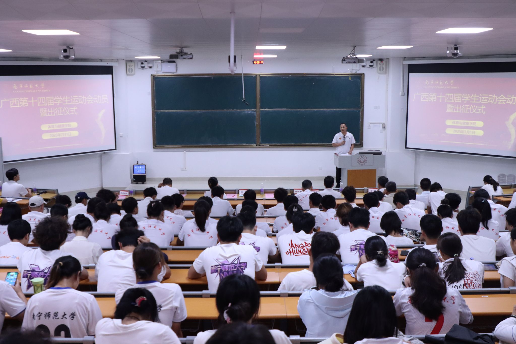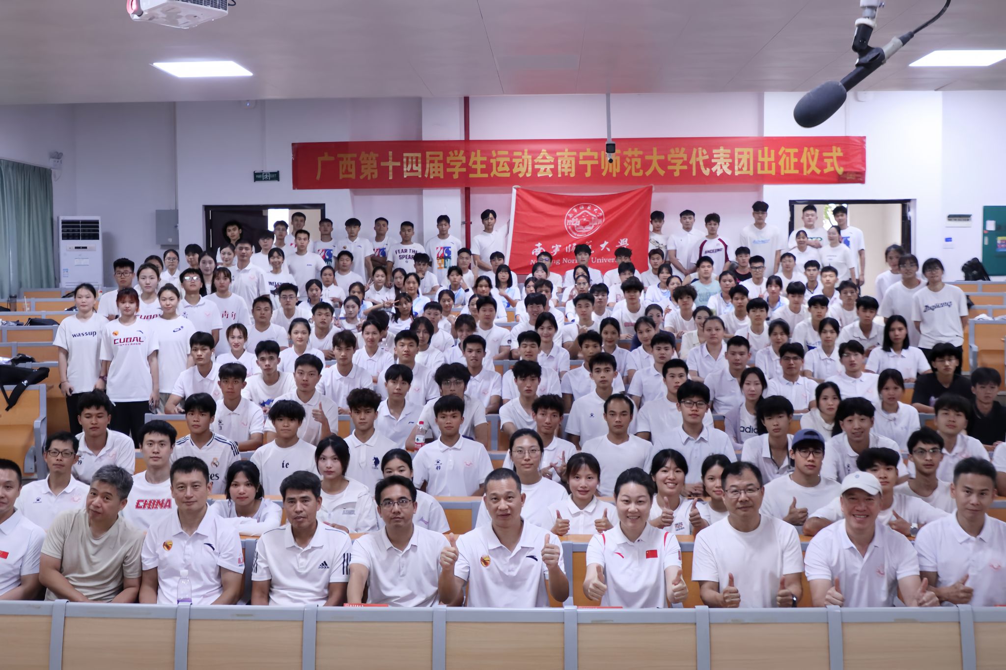 仪式上,余勋副院长首先传达了自治区教育厅动员会议精神,并部署参赛工作。他强调,广西第十四届学生运动会的举办,是对新时代中国青年体育竞技水平和体育精神风貌的充分展示,更是对我校体育工作的全面检验。他要求代表团成员务必提高政治站位,树立“健康第一”理念,将备赛参赛作为落实学校体育工作的具体行动。他着重指出,安全是首位,目标在于实现运动成绩与精神文明双丰收,并叮嘱各队严守规则,以拼搏与毅力展现南师学子风采。