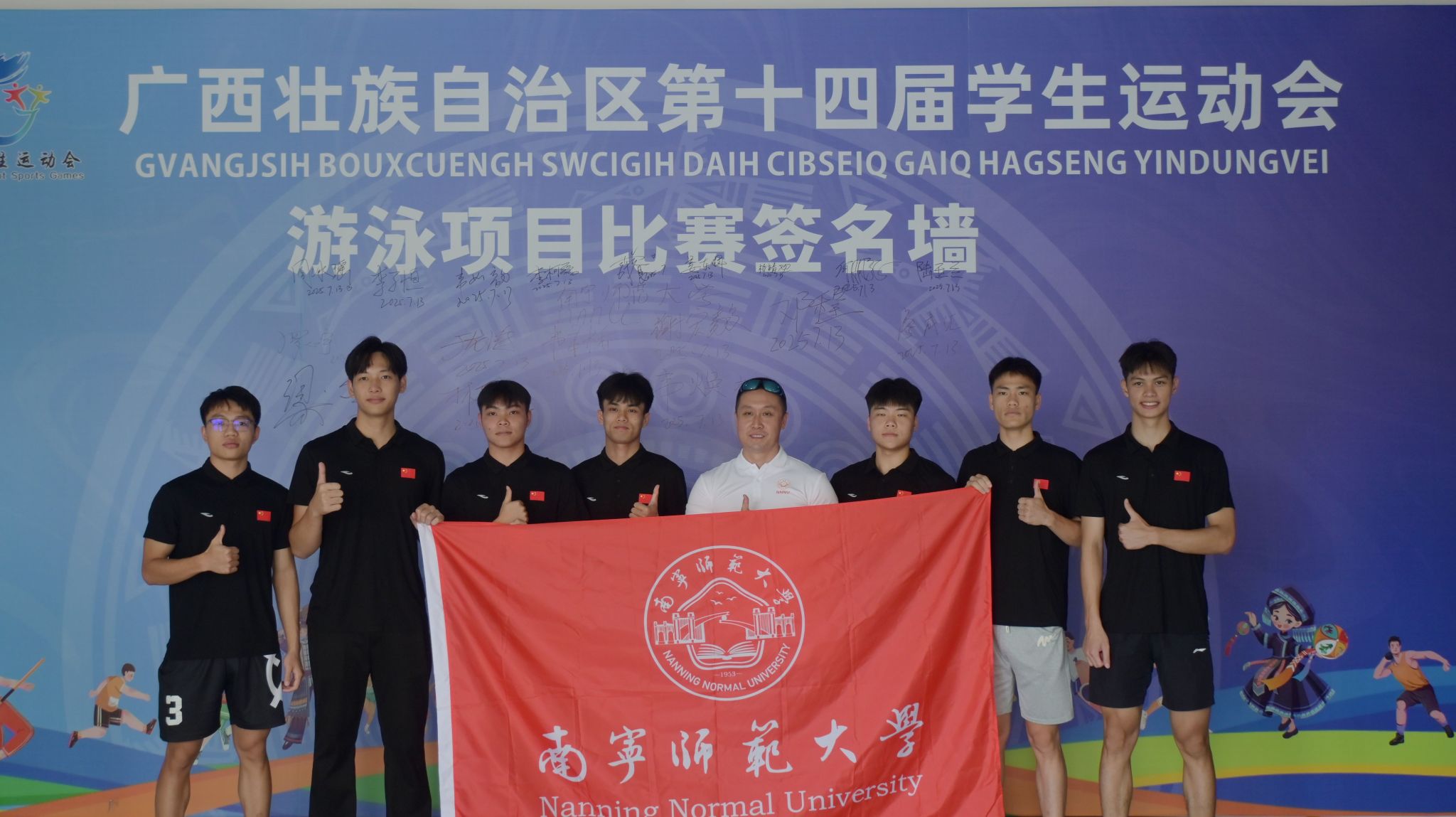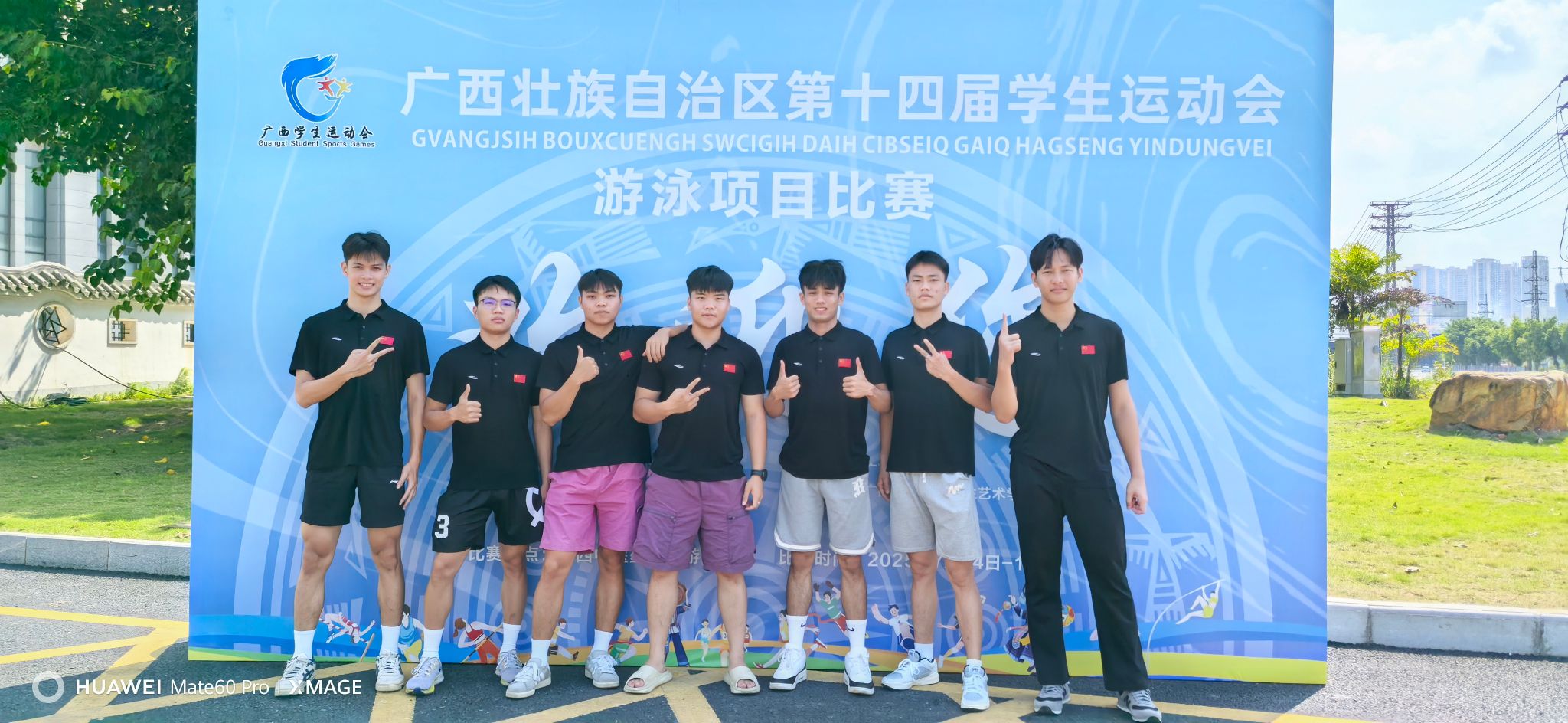 7月16日,为期三天的广西壮族自治区第十四届学生运动会游泳比赛比赛圆满落幕。我校游泳队选派7名来自体育教育专业的运动员参赛,于龙涛老师任教练。经过激烈角逐,共斩获体育专业甲组个人赛中自由泳、仰泳项目两枚金牌,同时在个人赛其他项目中获得两次第四名、一次第五名、一次第七名,在团体赛男子4×50米混合接力项目中第四名的佳绩,创下我校游泳队在广西学生运动会中的最佳成绩,彰显专业实力。