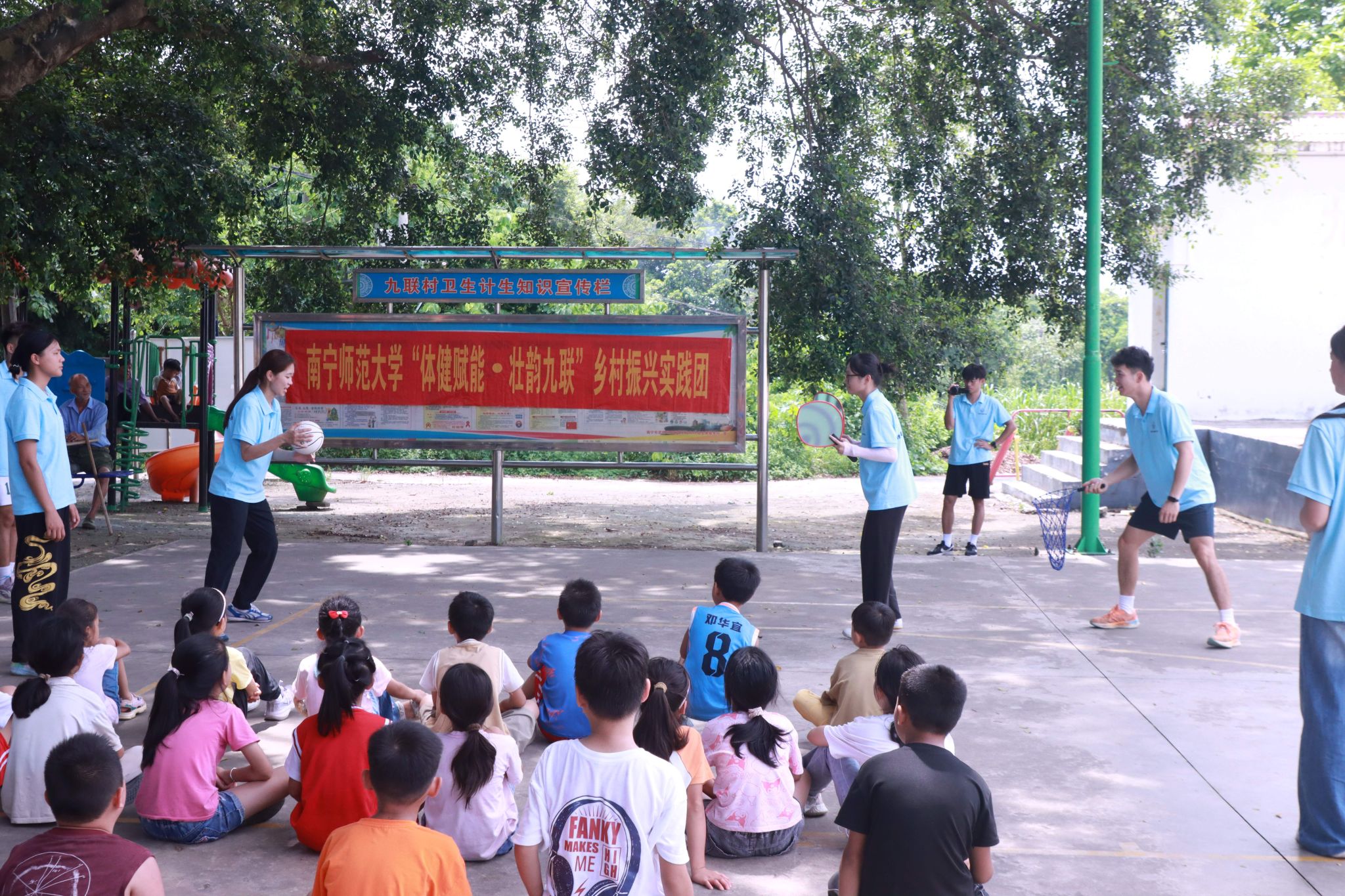 为弘扬民族传统文化,科普和推广少数民族传统体育项目,进一步丰富乡村小学生体育活动,7月16日,黄色短视频 “体健赋能·壮韵九联”暑期实践团在南宁市武鸣区九联村开展少数民族传统体育科普课堂。此次科普课堂由实践团队员吴青青主持,实践团队员依次展示各项目,九联村小学生参加。