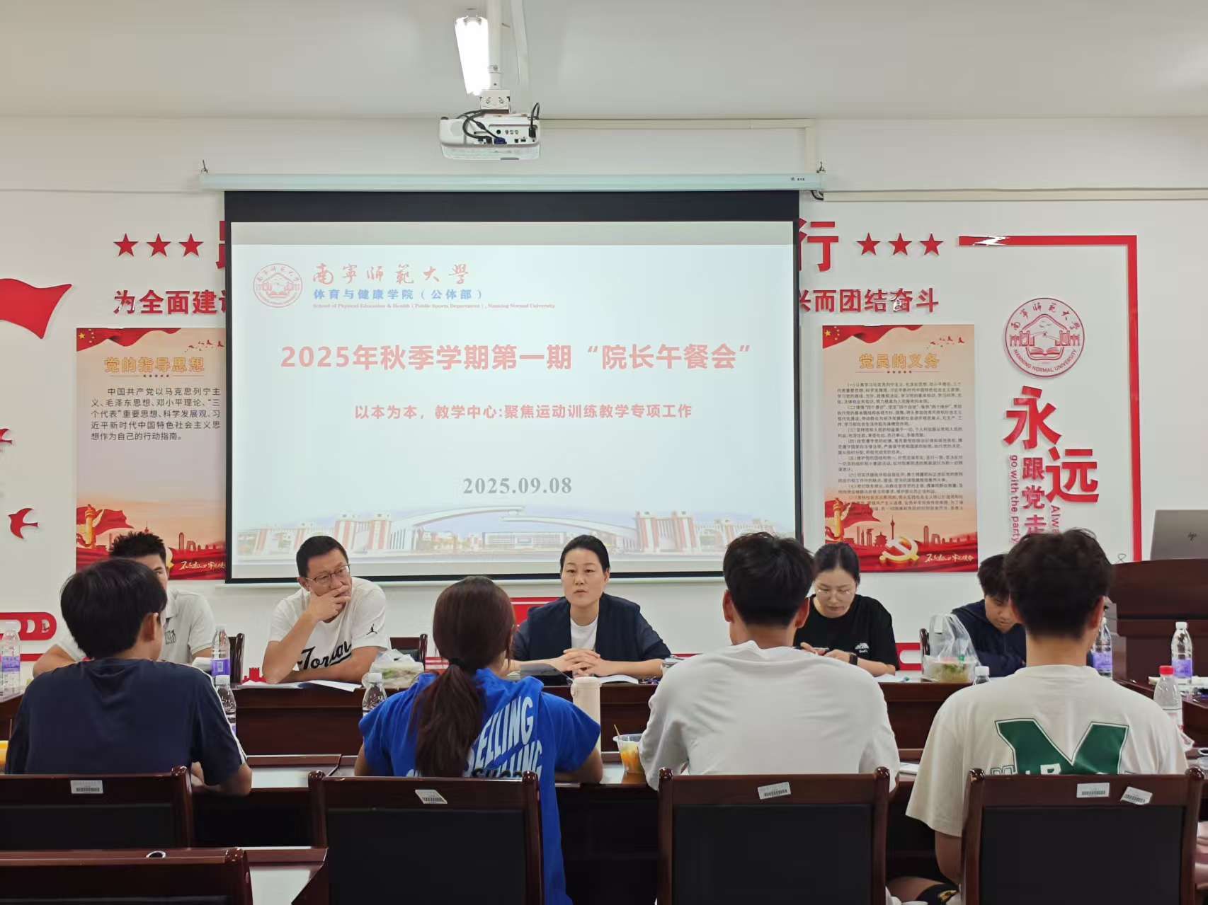 以“以本为本,教学中心:聚焦运动训练教学专项工作”为主题,举办了一场别开生面的院长午餐会。赵芳院长、专业负责人顾大成老师、青年教师级班主任代表尹兆松、王志元,以及12名运动训练专业学生代表共同参与。活动由院长助理马泓宇主持。