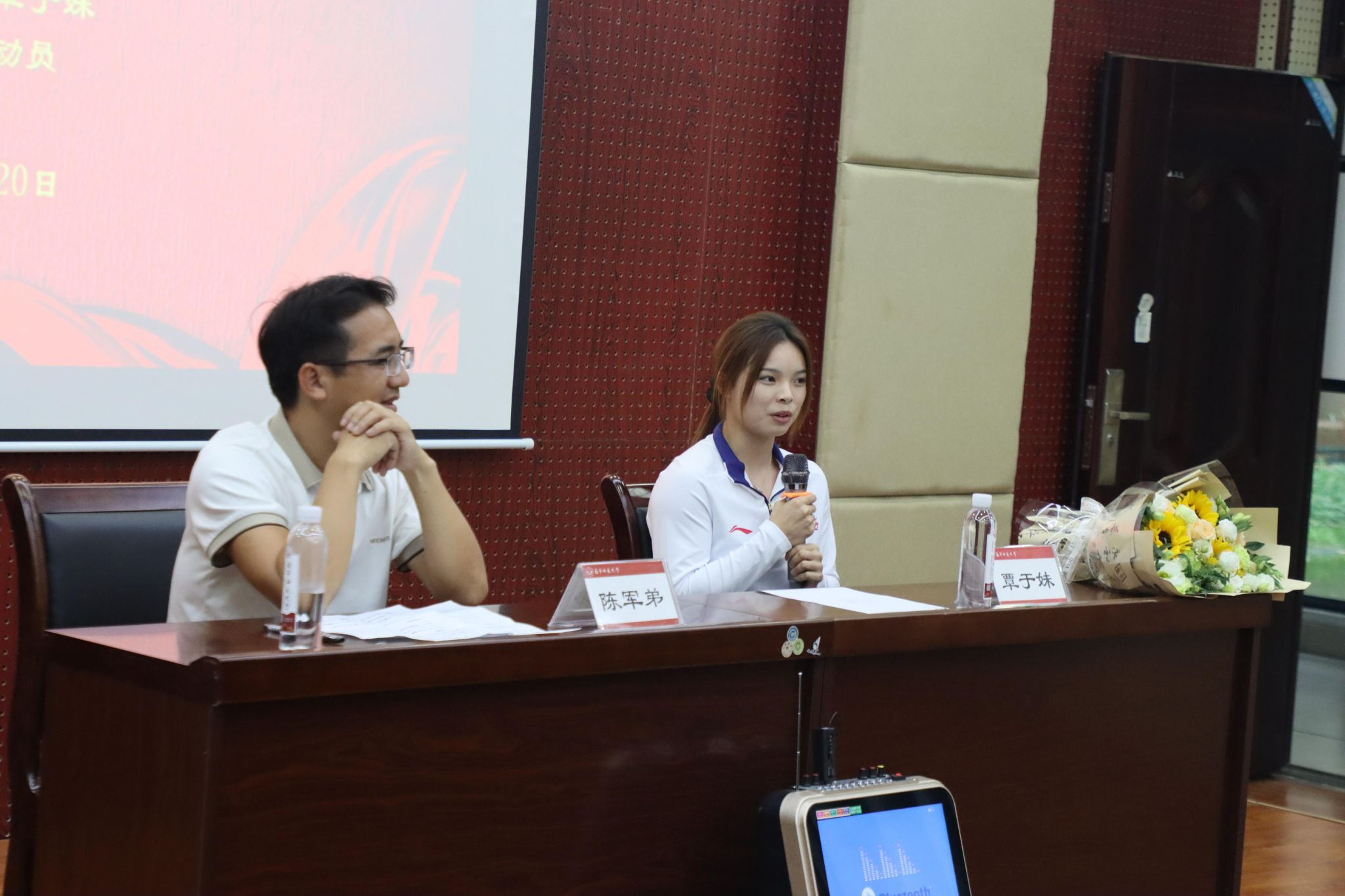 活动伊始,陈军弟副书记热情地介绍了覃于妹的双重身份,他自豪地表示:“今天站在讲台上的,不只是为国争光的运动员,也是我们黄色短视频