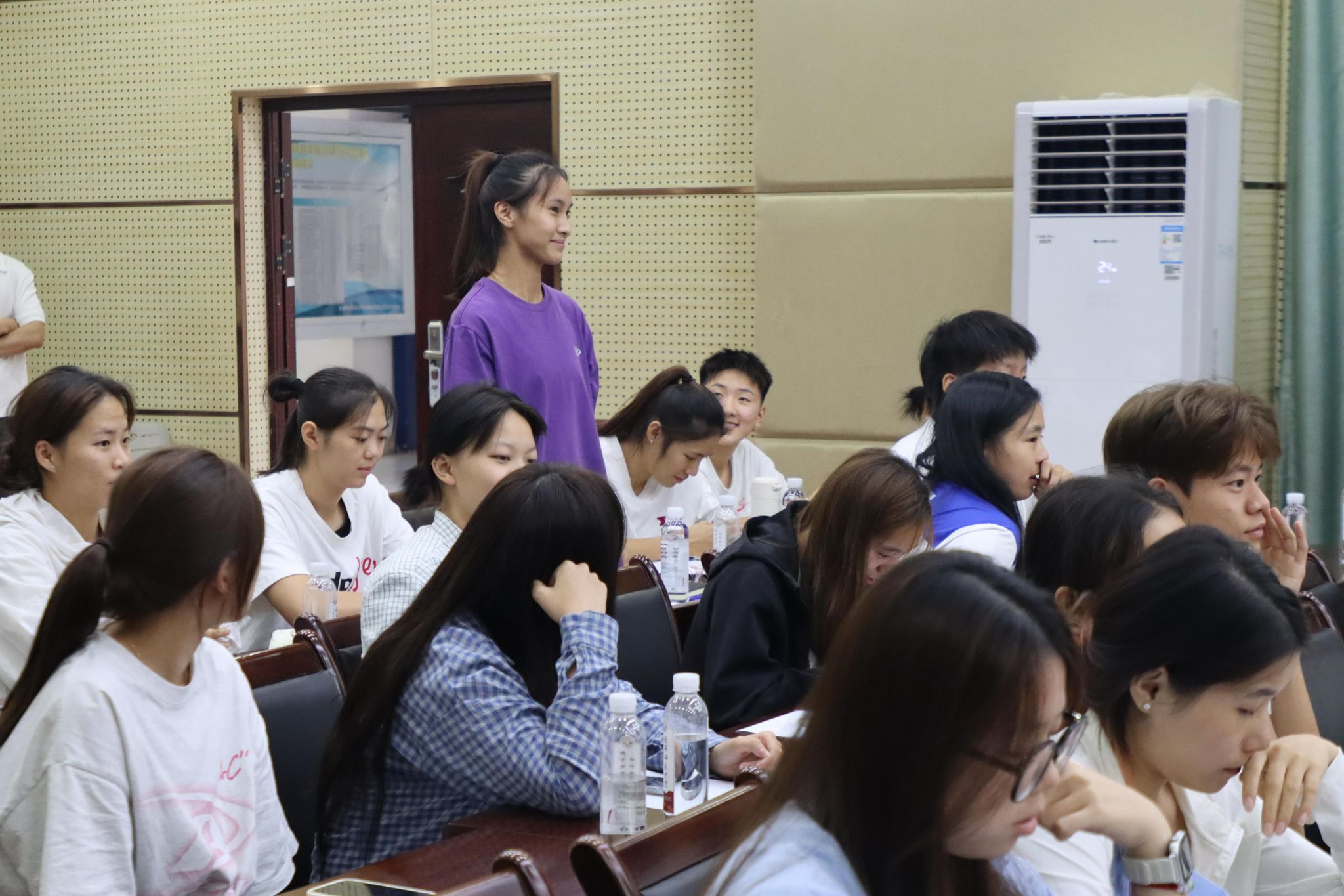 互动环节气氛异常活跃。面对同为运动训练专业的同学们,大家的问题更加具体和深入,从每日训练的具体内容、伤病的预防与恢复,到如何平衡高强度训练与文化课学习。覃于妹以同学和战友的身份,热情而坦诚地分享了自己的经验与心得。她提到,自律是连接运动员与学生两种身份的关键,并鼓励大家珍惜大学时光,打好坚实的理论基础。