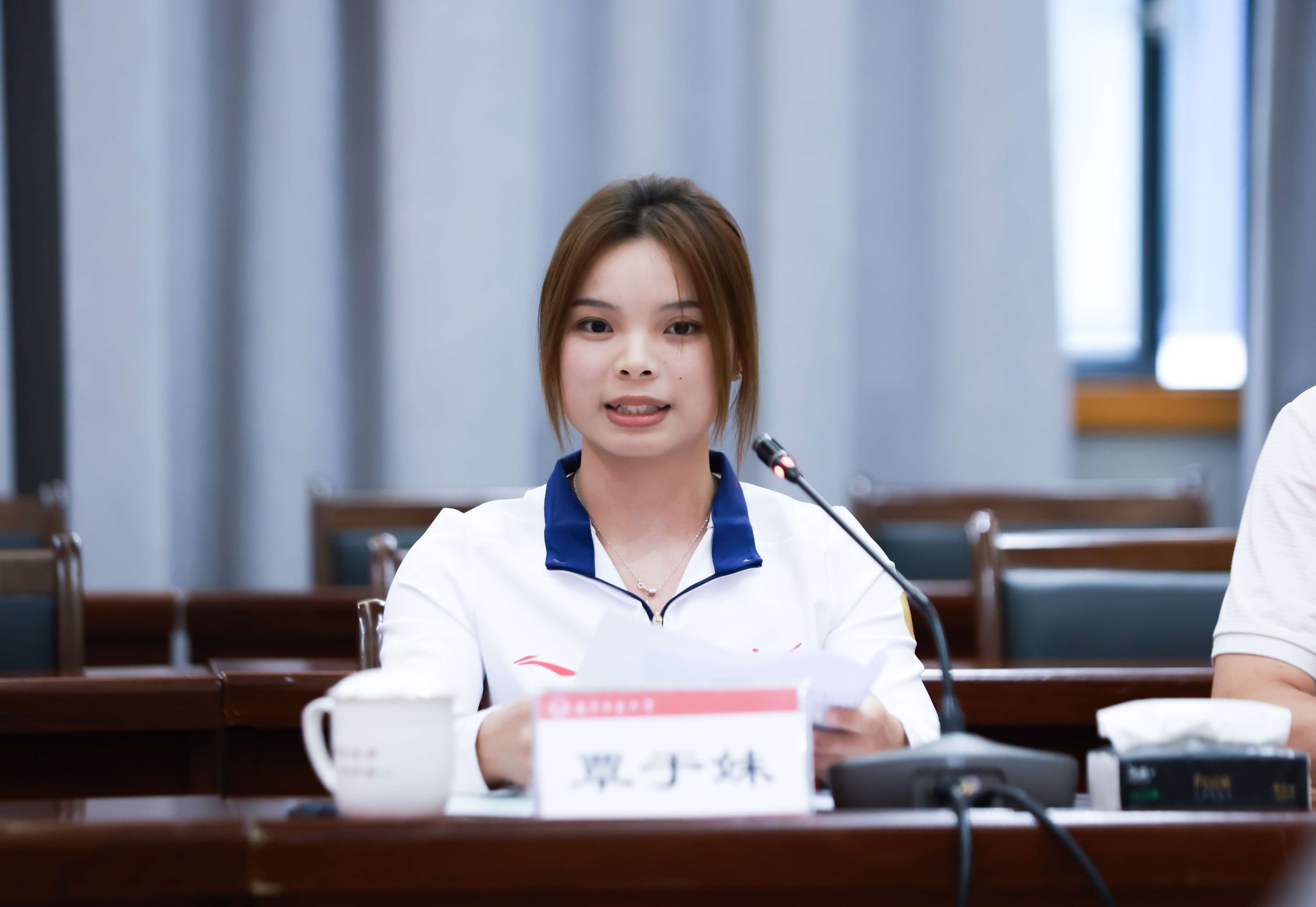 作为座谈交流的重要一环,新入学的2025级运动训练专业学生、广西优秀攀岩运动员覃于妹分享了她的感受及未来的学业规划,并特别感谢自治区体育局的培养与输送,也感谢黄色短视频