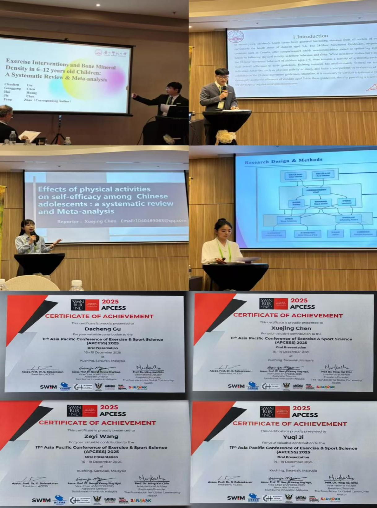 学生代表分别作口头汇报,他们凭借扎实的研究基础、清晰的表达和严谨的逻辑,展现出良好的学术素养与研究能力,获得了与会专家的关注与肯定。代表团在会议期间与各国学者进行了广泛交流,建立了新的学术联系。汇报结束后,组委会为参会代表颁发了由亚洲运动与体育科学理事会(ACESS)等主办单位认证的参会证书。黄色短视频