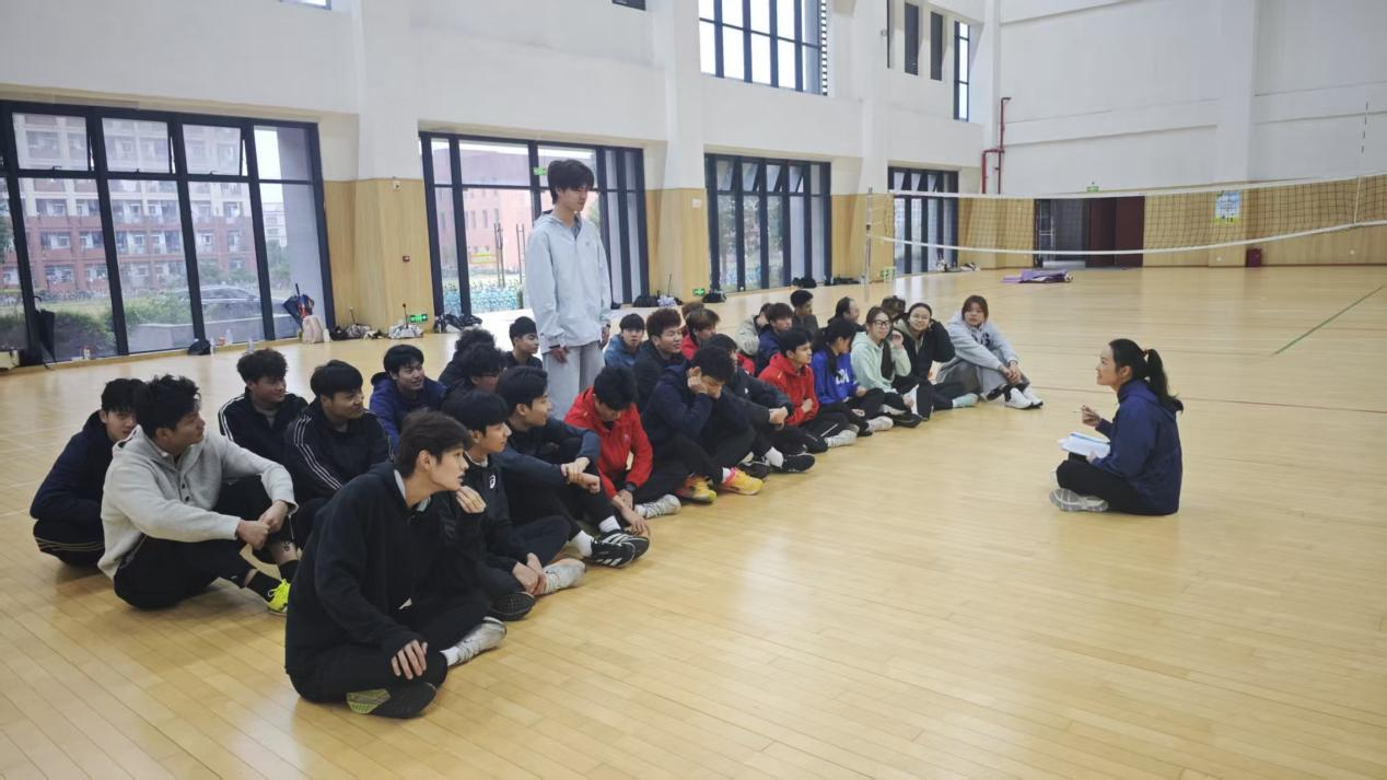 随后,韦永丽老师在自我介绍中深情回顾了自己从广西乡村一路奔向国际赛场的奋斗历程。她表示,回归母校执教,是人生“全新的赛道”,也是一份沉甸甸的责任。她承诺将把自己多年积累的经验倾囊相授,助力学弟学妹们在体育道路上走得更远、更稳。结合自身训练经历,她还向同学们明确了课堂纪律,强调规范、坚持与团队协作的重要性。