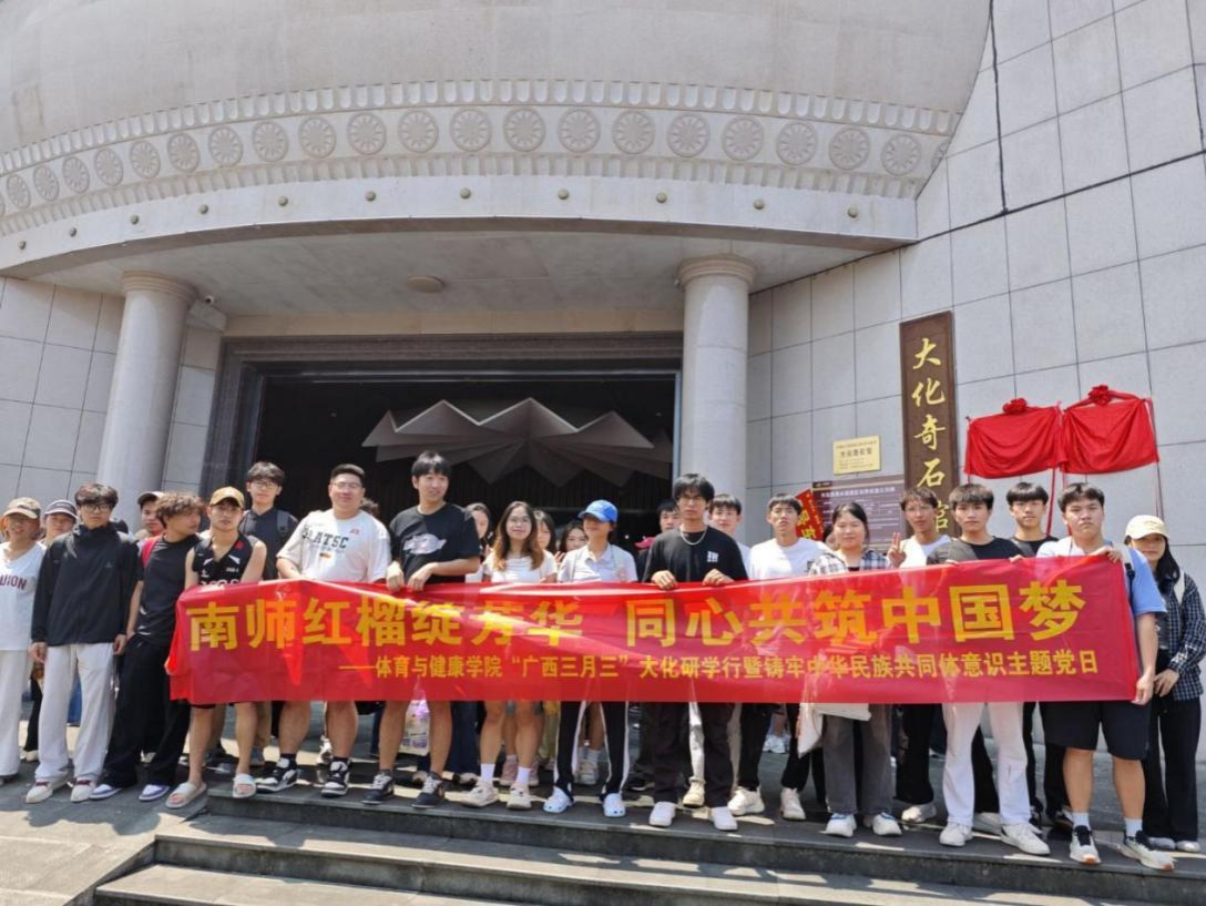 活动紧扣2026年“广西三月三”的节日主题,是一场集民族风情、东盟交流、AI科技体验于一体的文旅盛会。师生沉浸式参与民俗文化展演和节庆互动,现场观摩碰蛋节、铜鼓舞、山歌等非物质文化遗产项目,在亲身体验中感受中华优秀传统文化的博大精深,体悟民族团结的深厚情感与乡村振兴的丰硕成果。此外,校男子篮球队与大化瑶族自治县男子篮球队进行了一场友谊赛,双方以球会友,在竞技交流中增进情谊,充分展现了顽强拼搏的体育精神和团结协作的良好风貌。此次比赛也是学院推动产教融合、探索“体育+产业”发展路径的一次生动实践,为后续深化校地合作、服务地方体育产业发展奠定了基础。